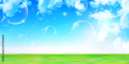 シロツメクサ:シロツメクサ 春 春の花 草原 自然 花 4月 群生 晴天 青空 満開