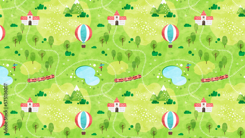 風景:水彩 水彩画 背景 背景素材 風景 にじみ 丘 草原 野原 春 夏 秋 冬 原っぱ 高原 森