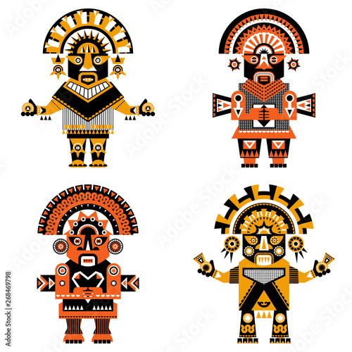 Vector illustration set of Inca style monster