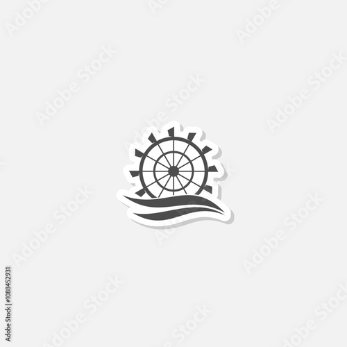Classic old Noria wooden waterwheel from Syria or the arabic Middle East, logo design vector template label style.