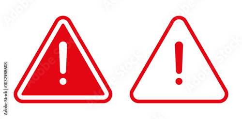 Set of black and red exclamation mark isolated on white background. Precautions symbol. Ink brush strokes.  Watercolor icon design. Vector illustration, eps 10.
