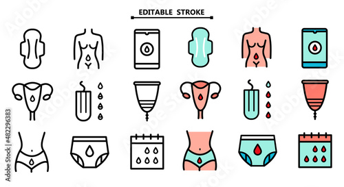Woman Menstruation line Icons Set