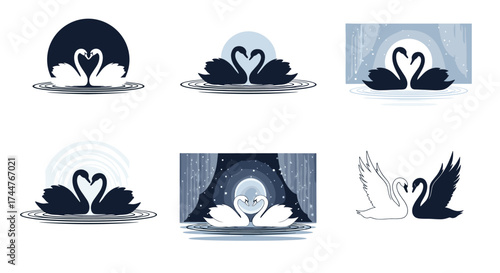 Majestic howling wolf silhouettes with moon and stars, perfect for logo designs, brand identities, and captivating animal-themed illustrations in modern style