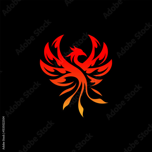 Majestic phoenix mythological bird with spread wings, simple line art vector emblem