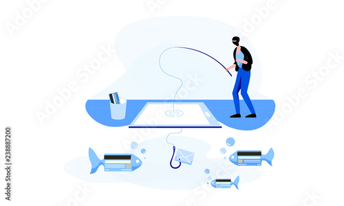 Technology 3 - Phishing - flat vector concept digital illustration of phishing scam metaphor. Hacker fraud protection, password steal, data phishing. Creative landing web page design template