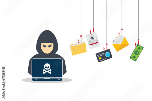 Data hacking, fishing hook, stealing confidential data, personal information and credit card detail