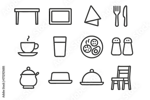 Collection of icons for tableware, cutlery, glass, plate, spoon, fork, vector editable and resizable EPS 10