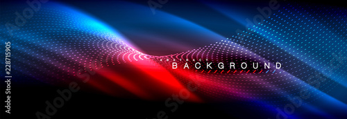 Shiny neon lights, dark abstract background with blurred magic neon light curved lines