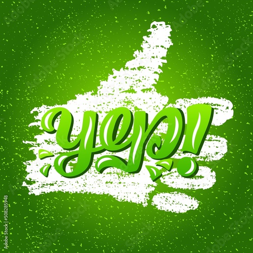 Yep and nope. Handwritten lettering illustration. Black vector text with neon elements on white background.