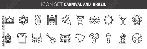 Brazil & Argentina Icons. Outline icon set of Brazilian cities and culture hubs: Rio de Janeiro skyline, Sao Paulo skyscraper,