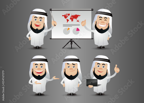 Arab Business Man Presentation Flip Chart Finance, Arabic Businessman Training Conference Flat Vector Illustration
