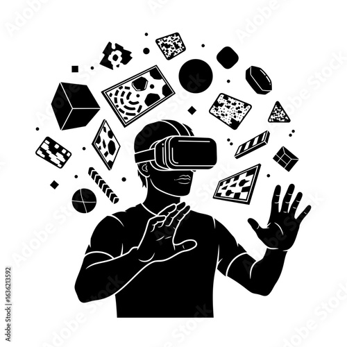VR Headset Icon: Person with AI-Generated 3D Holograms Silhouette