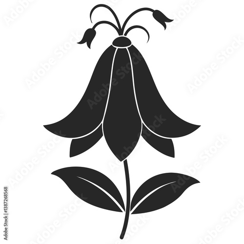 Silhouette of a Elegant Bellflower Plant in Full Bloom, a Simple Design