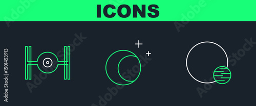 Set line Mars rover, Satellite dish, Cosmic ship and Space capsule icon. Vector
