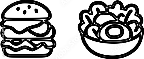 Black and White Burger Illustration: Classic Fast Food Graphic Design