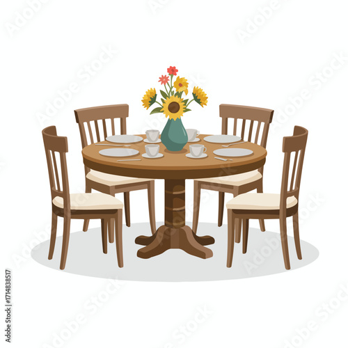 Dining Table Set Furniture Wooden Structure Minimalist Home Interior Design Vector