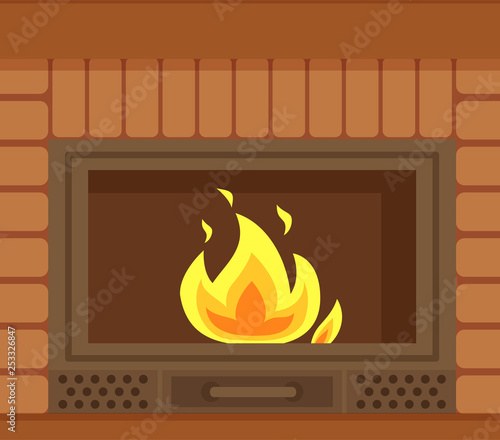 Brick Wall with Flame Icon Representing Fire Protection and Safety Barrier