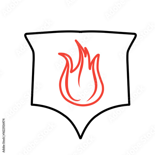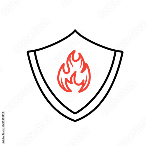 Modern shield with fire symbol illustrating fireproof security safety and emergency defense
