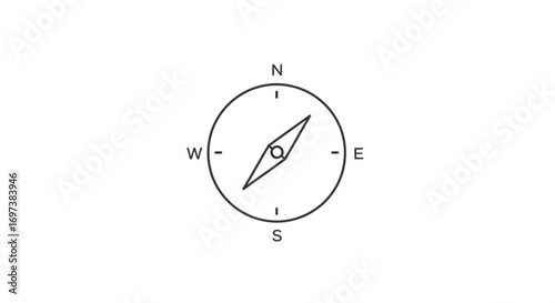 A continuous line drawing of a compass with clear North, East, South, and West cardinal points, symbolizing guidance and direction on a white background.