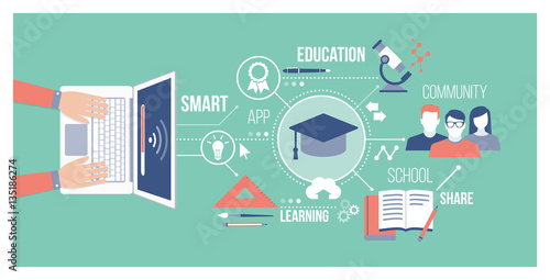 Education. Creative vector illustration for web banner, social media, business presentation, marketing material. Back to school. Distance education, online learning.