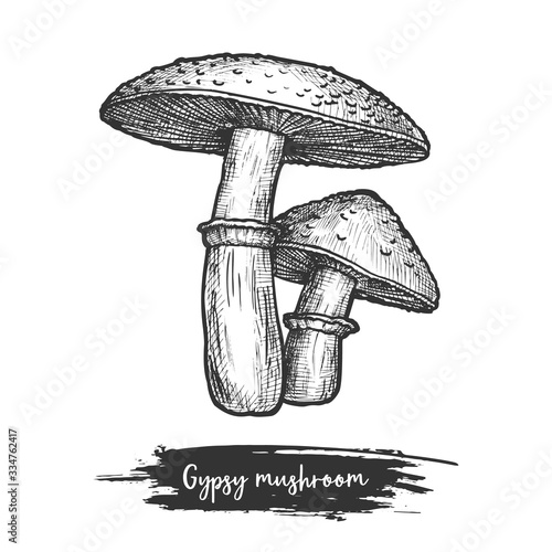 Honey agaric mushroom hand drawn vector illustration. Sketch style drawing isolated on white background with sliced pieces. Organic vegetarian object for menu, label, recipe, product packaging