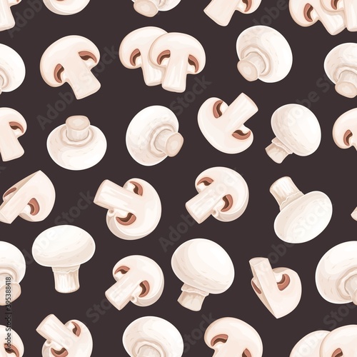 mushrooms on a white background, vector illustration, pattern. a piece of champignon in a cut. mushroom set. vegetable pattern. illustration black and white in pencil drawing style