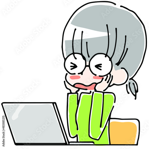 笑顔で話しているテレワーク中の女性のイラストカット  スマホ  PC