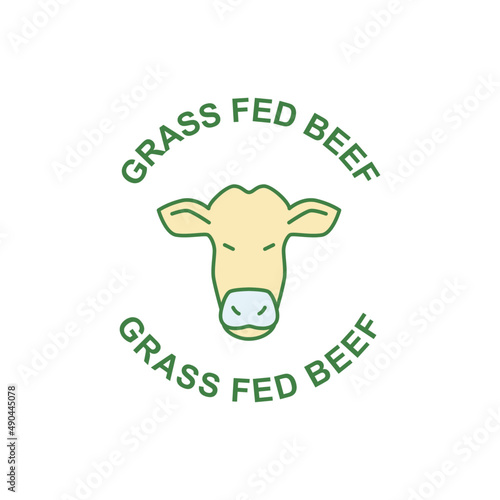 Grass fed beef label icon  in black flat glyph, filled style isolated on white background