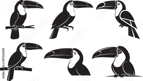 Toucan Logo Variations. Rainforest wildlife. Set Logo of Rainforest wildlife: toucan beak profile. harmonious logo variations of the same emblematic concept,
