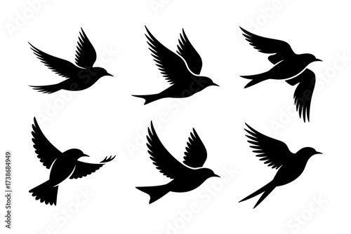 Various bird species are illustrated in clean line art, each demonstrating distinctive shapes and postures, perfect for educational or decorative use.