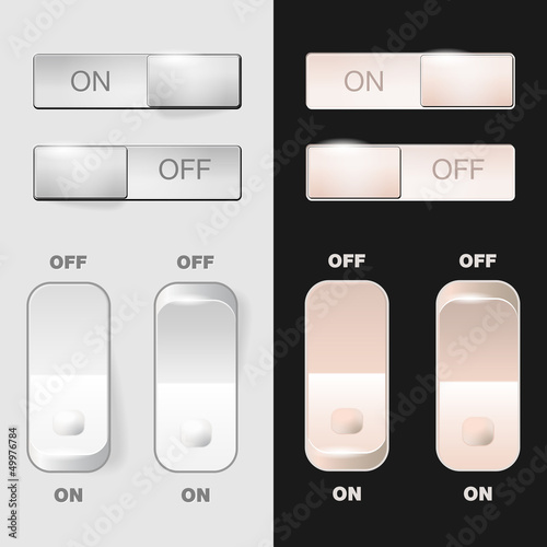 Electrical control panels, switch interfaces, industrial monitoring units, button layouts, gauge systems, automation icons - flat vector