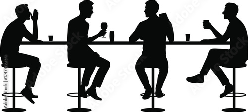 Silhouettes of young people socializing, having fun, and enjoying drinks together, perfect for representing friendship, celebration, and social gatherings
