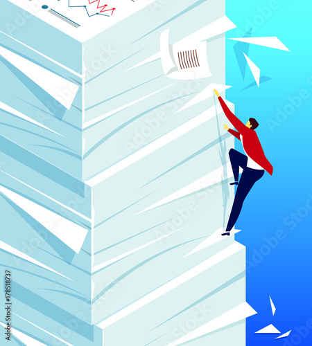 Business adversity and challenge - Businessman walking and climbing up hill trying to overcome problem and reach the top. Flat design vector illustration