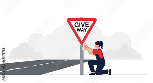 Cyclist Taking a Break near a Merge Lane Sign for Road Safety Awareness