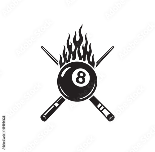 billiard club emblem vector illustration, crossed cues with three balls and star, ideal for sports badges, pool club logos, tournament branding, and recreational game design projects.