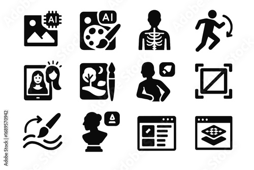 Billiards icons set featuring players, pool tables, and creative game elements for design projects