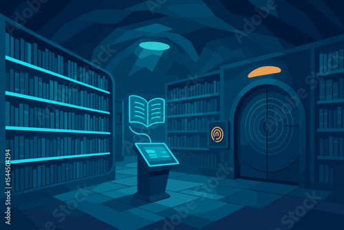 Edtech library illustration featuring books with digital circuit patterns, symbolizing the integration of technology and education