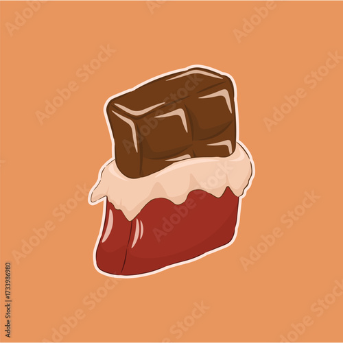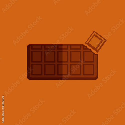 Vector chocolate bar illustration with smooth brown texture, representing sweet food, dessert, and indulgence themes