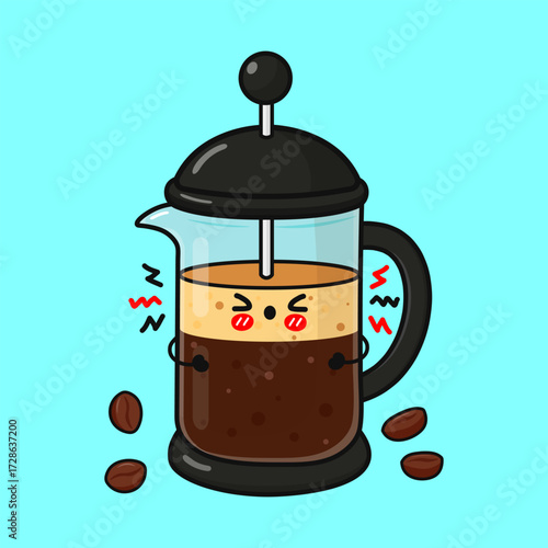 Cartoon barista pouring coffee into cup surrounded coffee beans