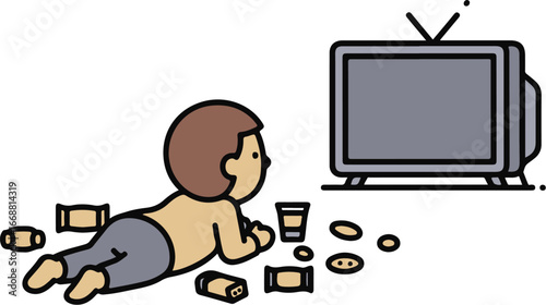 Fast food addiction illustration featuring sad fries with various fast food items, unhealthy eating habits, copy space