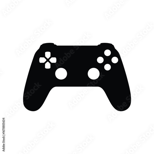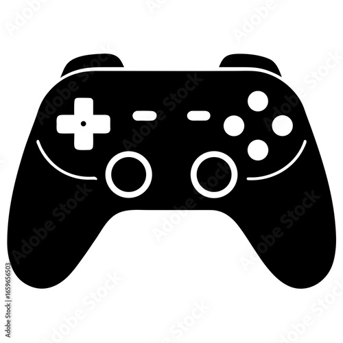 Illustration of a black gamepad with white buttons for gaming on a white background design element