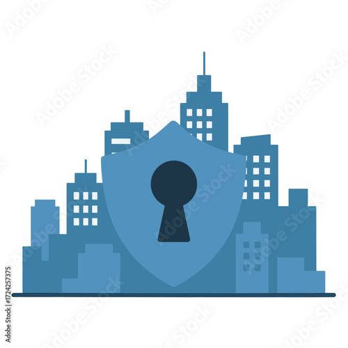 digital padlock with futuristic circle shield on blue background with copy space. cyber security and data protection