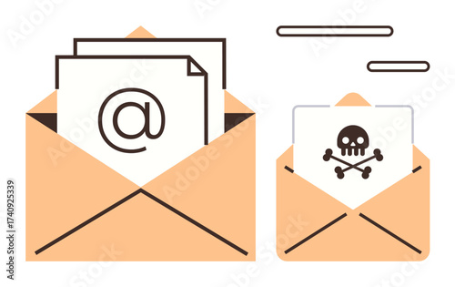 Orange envelope containing a letter with a skull icon, symbolizing malicious or phishing emails. Ideal for cybersecurity, phishing awareness, hacking threats, online safety, IT security, data