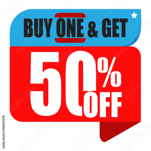 Red 50% Off Star Badge Promotional Discount Label for Sale and Marketing Campaigns