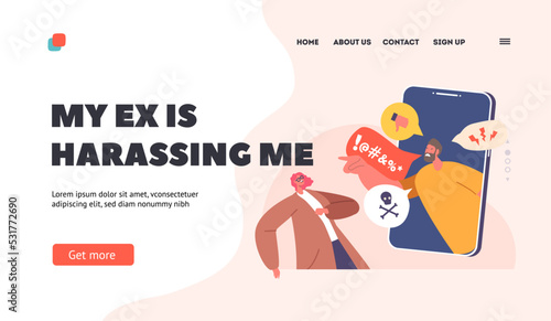 Bulling landing. Stop bully teenagers aggressive digital haters garish vector business web page with social announce