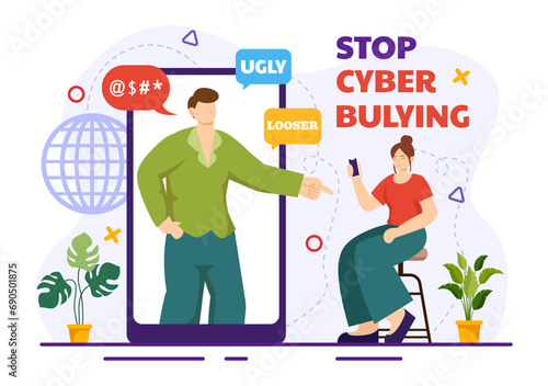 Stop Cyberbullying Vector Illustration of Haters Online with Bullying Internet, Trolling and Hate Speech in Flat Cartoon Background Design