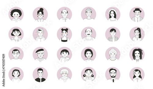 Set of different people's faces, human avatars collection. Different emotions, gender and age.
