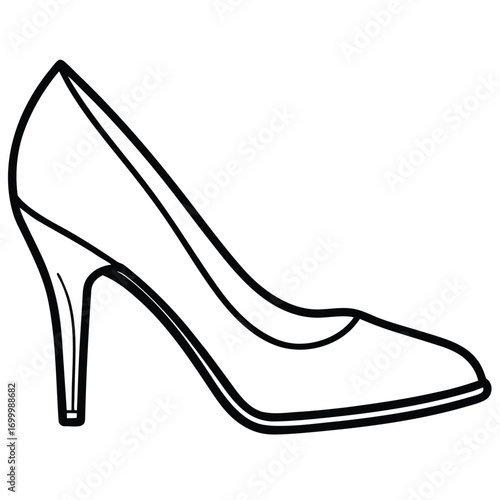 Elegant High Heel Shoe Line Art Illustration. hand drawn.