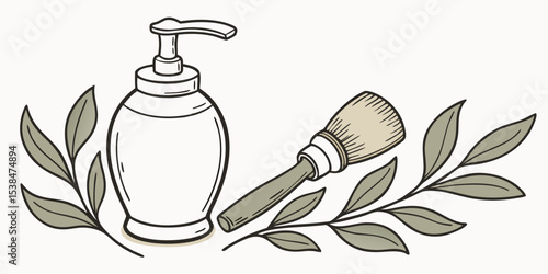Eco-friendly liquid soap dispenser with a green leaf icon. A simple vector graphic promoting clean hands and natural skincare wellness