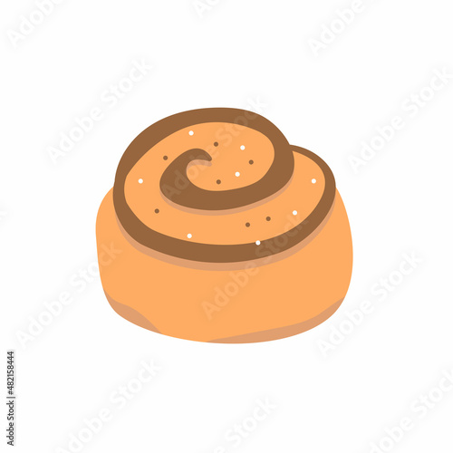 Delicious Cinnamon Roll With Baking Tools Illustration On White Background